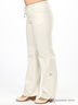 Детали: застежка на молнию и на пуговицу, втачной пояс со шлевками для ремня, два кармана, низ изделия на кулиске со шнурком, регулирующим длину изделия