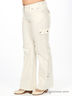 Детали: застежка на молнию и на две пуговицы, втачной пояс со шлевками для ремня, шесть карманов, по бокам кулиски со шнурками, регулирующим длину изделия