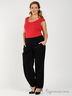 Детали: широкий отрезной пояс со шлевками; два втачных кармана спереди; низ изделия дополнен кулискам; в шлевки продет оригинальный пояс