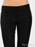 Брюки прямого покроя из плотного лоснящегося материала. Широкий отрезной пояс. Застегиваются на молнию и крючки. Сзади имитация прорезных карманов.