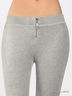 Бархатные брюки прямого покроя. Верх изделия посажен на широкую трикотажную резинку. Застегиваются на молнию, укаршенную брелком со стразами. Сзади два накладных кармана.