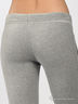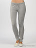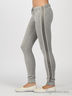 Бархатные брюки прямого покроя меланжевого серого цвета. Верх изделия посажен на широкую резинку с кулиской. По бокам атласные вставки. Низ брючин посажен на широкую резинку.