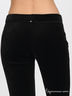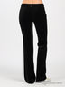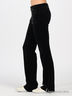 Бархатные брюки прямого покроя темно-серого цвета с зеленым отливом. Верх изделия посажен на широкую резинку. Спереди застегиваются на молнию с брелком в стразах. Два накладных кармана.