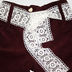 Вельветовые брюки с пришитыми шлевками и застежкой на пуговицу в виде сердечка. В шлевки вставлен оригинальный пояс.