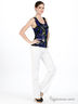 Детали: застежка на молнию и пуговицу, втачной пояс со шлевками для ремня, спереди имитация втачных карманов, задняя часть изделия дополнена клапанами, имитирующими карманы
