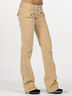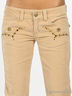 Классические брюки прямого кроя из бархатистой плотной, неэластичной ткани. Застегиваются на молнию и пуговицу. Четыре кармана. Передние карманы декорированы стразами.