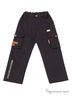 Плотные брюки в полоску оригинального кроя. Застежка - молния, пуговица. По талии брюки регулируются внутренней резинкой. Сбоку объемные карманы на кнопках. Сзади имитация карманов. Брюки декорированы принтами, нашивками.
