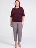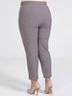 Брюки прямого силуэта, с застежкой гульфик с тесьмой молнией.Верх брюк на притачном поясе, застегивающемся по центру на петлю и пуговицу.Брюки длиной 7/8. С 58 размера в пояс задней половинки брюк вставлена эластичная тесьма.