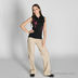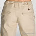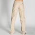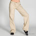 Бежевые брюки из плотного хлопка на молнии, заклёпке и на завязках. По два удобных кармана спереди и сзади. Штанины широкие и прямые. Эти брюки можно носить с ремнём, так как на них есть шлёвки для ремня.