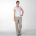 Брюки актуального кроя со стрелками. На поясе есть шлевки под ремень. По бокам и сзади прорезные карманы.