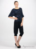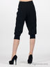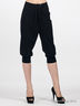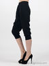 Очаровательные укороченные женские брюки оригинального кроя внахлест. Застежка на молнию и пуговицы. Низ брюк с эластичными вставками. Изделие декорировано складками.
