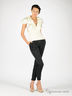 Брюки из легкого шелковистого материала. Отрезной пояс. Застегиваются на пуговицу спереди. Два кармана.