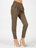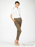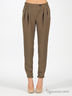 Брюки из легкого шелковистого материала. Отрезной пояс. Застегиваются на пуговицу спереди. Два кармана.