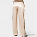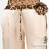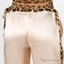 Элегантные брюки из натурального атласного шелка. Пояс на кулиске выполнен из контрастного шелка с принтом, имитирующим леопарда, и из такого же материала выполнены лампасы по бокам брюк. Брюки имеют аккуратные врезные карманы и украшены цветком-брошью в тон лампасам и поясу. Прекрасный вариант для дома, позволяющий почувствовать себя комфортно и элегантно одновременно.
