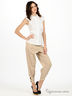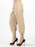 Детали: отрезной пояс со шлевками, застегиваются на молнию и пуговицу, спереди 2 втачных кармана, сзади 2 прорезных кармана на клапане и пуговице, брючины застегиваются на пуговицу