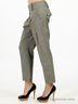 Детали: отрезной пояс со шлевками, застегиваются на молнию и пуговицы, спереди 2 втачных кармана, сзади 2 прорезных кармана на клапане и пуговице