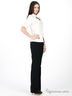 Детали: отрезной пояс со шлевками; застегиваются на молнию и пуговицу; декорированы контрастной прострочкой; сзади имитация карманов