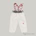 Детали: штанишки для девочки с подтяжками и ремнем, на колене кармашек с пуговкой-сердцем.