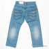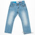 Детали: застежка на пуговицу и молнию, пришиты шлевки, четыре передних кармана, два задних кармана, эффект потертости