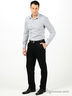 Детали: классический крой, втачной пояс и шлевки для ремня, пять карманов, застежка на молнии и на замок с пуговицей, брючины заужены к низу, брюки со стрелками.
