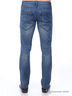 Детали: застежка на молнию и пуговицу, пришиты шлевки, три передних кармана, два задних кармана, эффект потертости