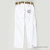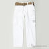 Детали: втачной пояс и шлевки для ремня, шесть карманов, на брючинах накладные, брючины прямые по всей длине