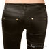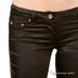 Прямые узкие брюки со стрелками. Несмотря на то, что верх модели выполнен по джинсовому крою с 5-ю карманами и декорирован клепками, благодаря материалу с атласным блеском и стрелкам, изделие прекрасно подойдет к верху в классическом стиле. Универсальная модель для ежедневного городского гардероба.
