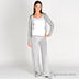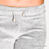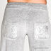 Велюровые трикотажные брюки в стиле спортивного гламура. Пояс на широкой резинке с кулиской. Сзади два накладных кармана, декорированые блестящим принтом. На левой штанине спереди принт из мелких страз.