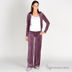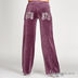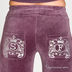 Велюровые трикотажные брюки в стиле спортивного гламура. Пояс на широкой резинке с кулиской. Сзади два накладных кармана, декорированые блестящим принтом. На левой штанине спереди принт из мелких страз.