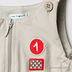 Модель прямого кроя. Лямки пристегиваются на пуговицу. Застежка-молния по всей длине изделия. Застежка-боди на кнопках в шаговом шве. Вшитая резинка по нижнему краю проймы, в низ брючин и на уровне талии. Декоративные нашивки на полочке. Хлопковый подклад.