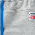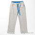 Спортивная модель прямого кроя. В пояс вставлена резинка и шнурок, завязывающийся снаружи. Один задний карман. Декоративная аппликация на заднем правом кармане.