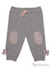 Детали: отрезной пояс на кулиске со шнурком, в области колен накладки, низ изделия дополнен манжетами и бантиками