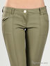 Элегантные слегка эластичные брюки. Отрезной пояс. Есть шлевки для ремня. Застегиваются на молнию и пуговицу. Сзади треугольная кокетка. Пять карманов. Декорированы прострочкой в тон, подчеркивающей длину ног.