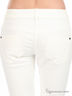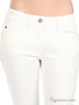 Детали: отрезной пояс со шлевками; пять карманов; застегиваются на молнию и пуговицу; левая штанина дополнена декоративными вставками