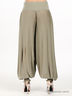 Детали: широкий отрезной пояс, плиссированная ткань, снизу на манжетах, оригинальный крой