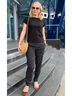 Брюки в стиле спорт шик. Модная и универсальная вещь вашего гардероба. Составляет комплект с топом Делакруз из той же ткани. Обуйте с туфлями на каблуке и отправляйтесь на деловую встречу. Для прогулки стоит обуть кеды и образ Casual готов.