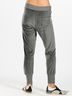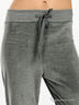 Велюровые спортивные брюки. Сверху посажены на трикотажную резинку и кулиску. Брючины посажены на широкую трикотажную резинку. Стильная и комфортная модель.