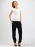 Спортивные трикотажные брюки свободного покроя из приятного на ощупь материала. Верх изделия посажен на широкую резинку и кулиску. Сзади один прорезной карман. Брючины с манжетами из трикотажной резинки. Комфортная и стильная модель.