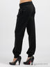 Спортивные трикотажные брюки свободного покроя из приятного на ощупь материала. Верх изделия посажен на широкую резинку и кулиску. Сзади один прорезной карман. Брючины с манжетами из трикотажной резинки. Комфортная и стильная модель.