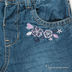 Детали: в пояс вшита резинка, два передних кармана, два задних кармана, изделие декорировано вышивкой, эффект потертости