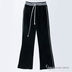 Детали: детские брюки, широкий пояс на кулиске, прямые брючины, два накладных кармашка сзади