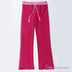 Детали: втачной пояс в виде трикотажной резинке с кулиской, брючины расклешены, по шву полоска, два накладных кармашка сзади