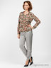 Оригинальные брюки зауженного кроя. Отрезной пояс со шлевками для ремня, на кулиске и веревочке. Застежка на молнию и крючки. Спереди 2 прорезных кармана на молнии.