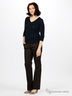 Детали: застежка на пуговицу и молнию, к поясу пришиты шлевки, два передних кармана, один боковой карман на брючине