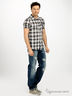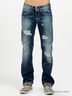 Стильные джинсы из плотной неэластичной ткани прямого кроя с эффектом потертости. Застегиваются на молнию с пуговицей. Втачной пояс со шлевками для ремня. Пять карманов.