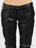Классические брюки прямого кроя из искусственной кожи. Застегиваются на молнию с пуговицами. Пояс со шлевками для ремня. Пять карманов.