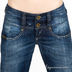 Прямые брюки из эластичного денима. Посадка пояса чуть ниже линии талии, есть шлевки под ремень. Штанины прямые от бедра. Имеют четыре кармана.