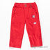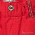 Модель прямого кроя. В пояс вставлена резинка и регулирующий шнурок, пришиты шлевки. Имитация застежки на пуговицу и молнию. Два передних кармана, два задних кармана. Декоративные нашивки спереди.