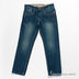Модель прямого кроя застегивается на пуговицу и молнию. Пришиты шлевки. Пять передних карманов, четыре задних кармана. Эффект потертости.