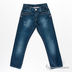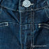 Модель прямого кроя застегивается на пуговицу и молнию. Пришиты шлевки. Три передних кармана, два задних кармана. Эффект потертости. Декоративная вышивка на задних карманах. Контрастная прострочка.